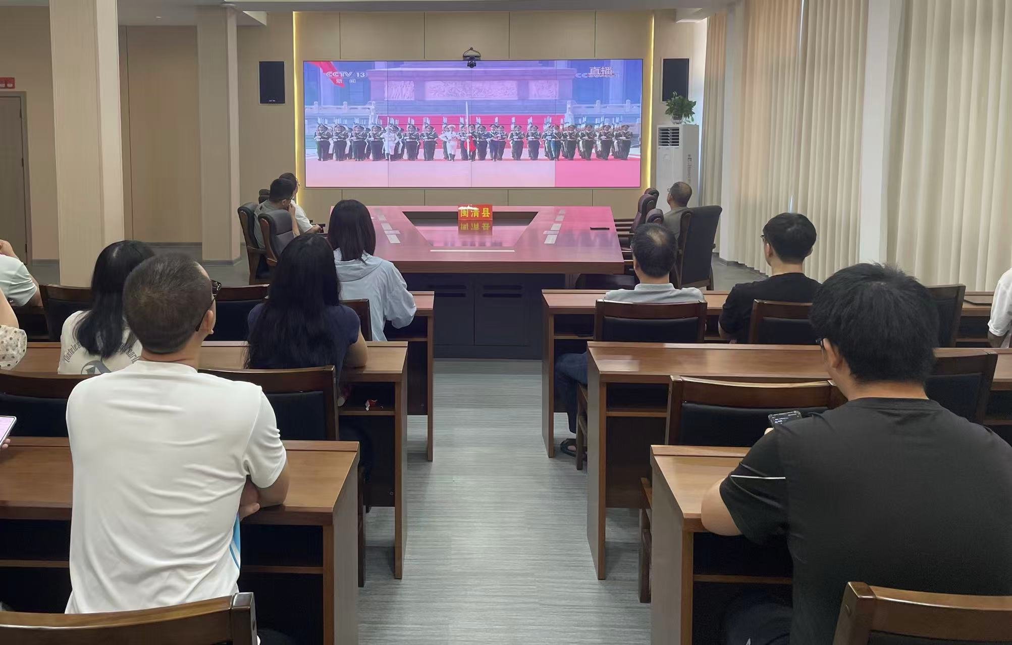 上午9时,全体人员准时集合,怀着崇敬之情等候仪式开始。阅兵过程中,全体人员全神贯注观看直播画面。受阅部队以铿锵步伐整齐通过天安门广场,新型装备方阵依次亮相,全面彰显我国国防实力与综合国力提升。现场干部职工神情自豪,深深震撼于祖国的昌盛和人民军队的强大,激起了大家的爱国热情、增强了民族自豪感和开拓创新精神。
