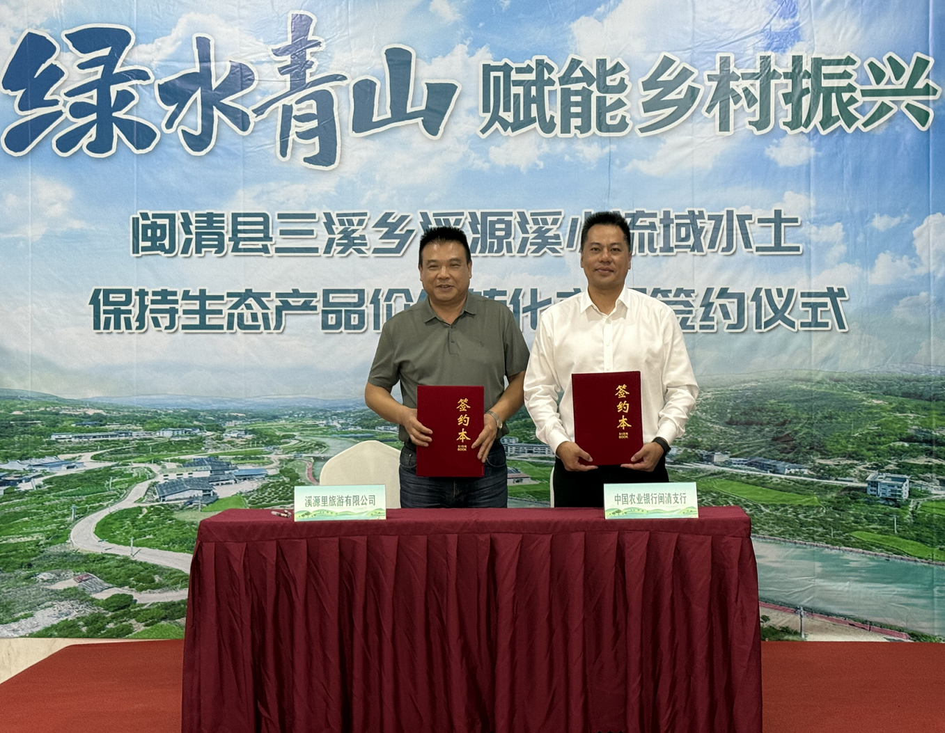 与此同时,此次交易实现水土保持生态产品绿色金融的创新突破。闽清溪源里旅游有限公司与中国农业银行闽清支行签署了绿色金融框架协议,获得3000万元绿色意向授信。这一过程中,金融机构以信用评估为依据,为符合条件的企业提供金融支持;企业则以良好的信用记录和项目前景获得资金注入,实现“生态资源资产化—金融资本精准导入—产业增值反哺生态”的可持续循环。这种基于信用的绿色金融模式,有力推动了产业生态化与生态产业化的深度协同、互促共进,为生态产品价值转化提供了强大的金融信用支撑。