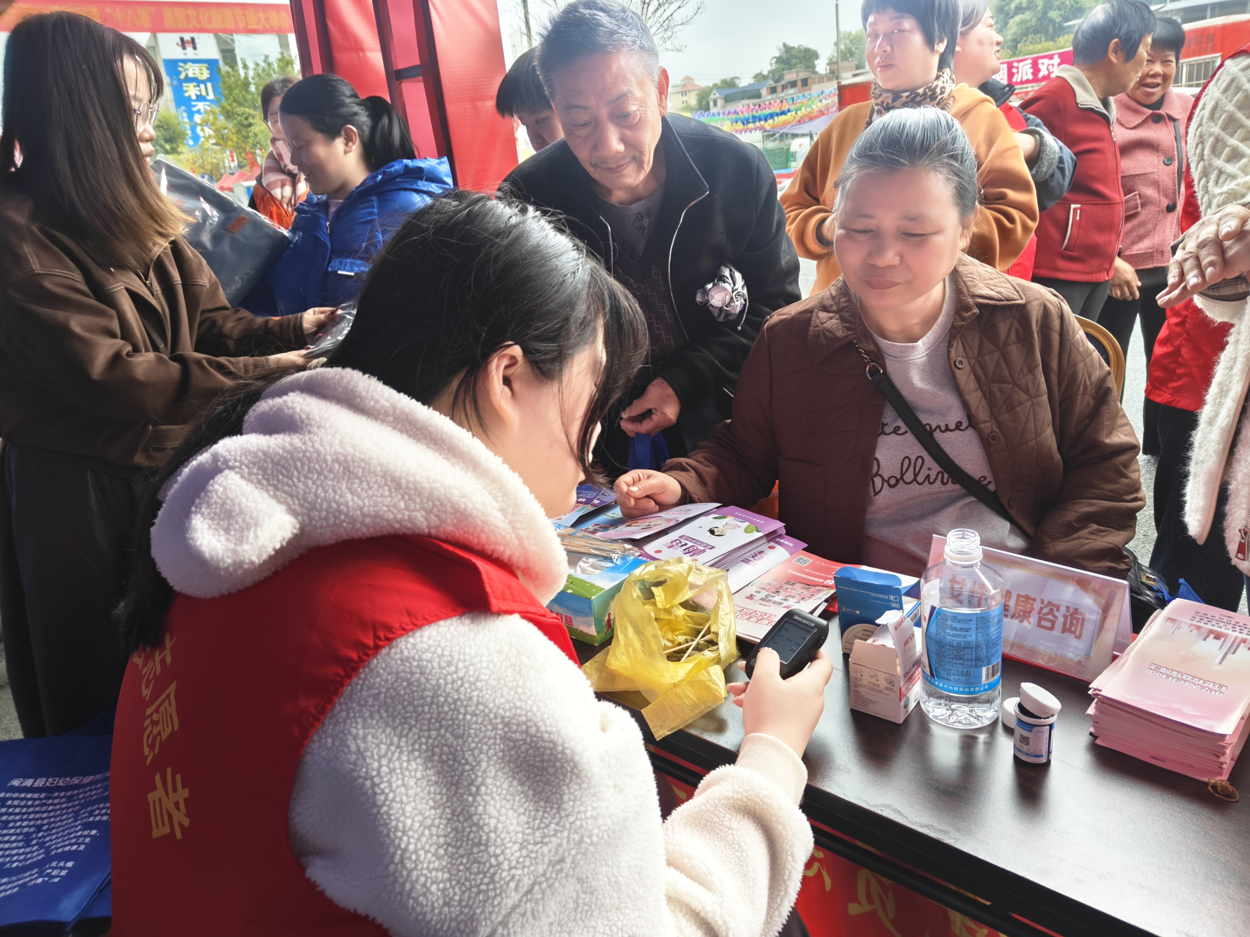 在健康服务区,市妇幼保健院、县卫健局、县妇幼保健院组织医护人员开展公益义诊,提供血压血糖测量、心肺听诊、妇科常见病咨询等基础体检服务,并重点开展“两癌”筛查科普宣传与预约登记,帮助女性树立“早预防、早发现、早治疗”的健康理念。县计生协会同步开展生殖健康、优生优育等科普宣传,进一步增强女性自我保健意识。此外,爱之翼社工组织安排专业心理老师到场,为有需要的妇女提供心理疏导和情绪调节服务,营造关爱女性心理健康的良好氛围。