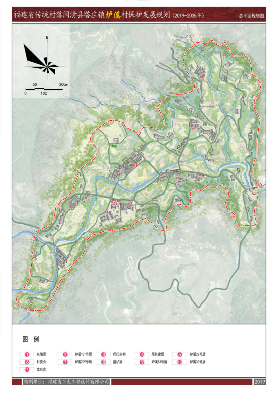 核心保护范围:核心保护范围北至炉溪村49号古民居,西至炉溪村101号古民居,南至灰墙厝,面积为11.26公顷。