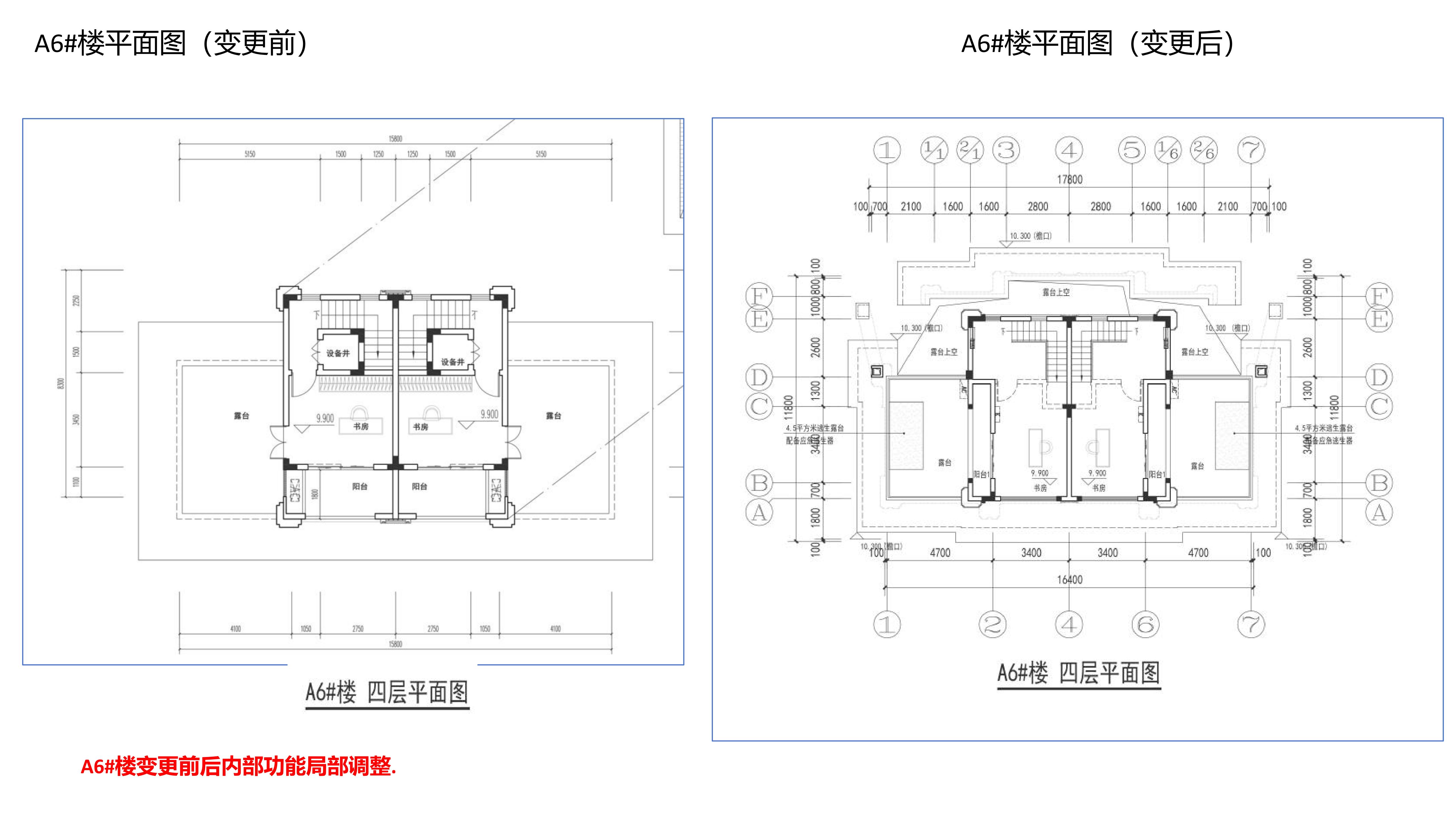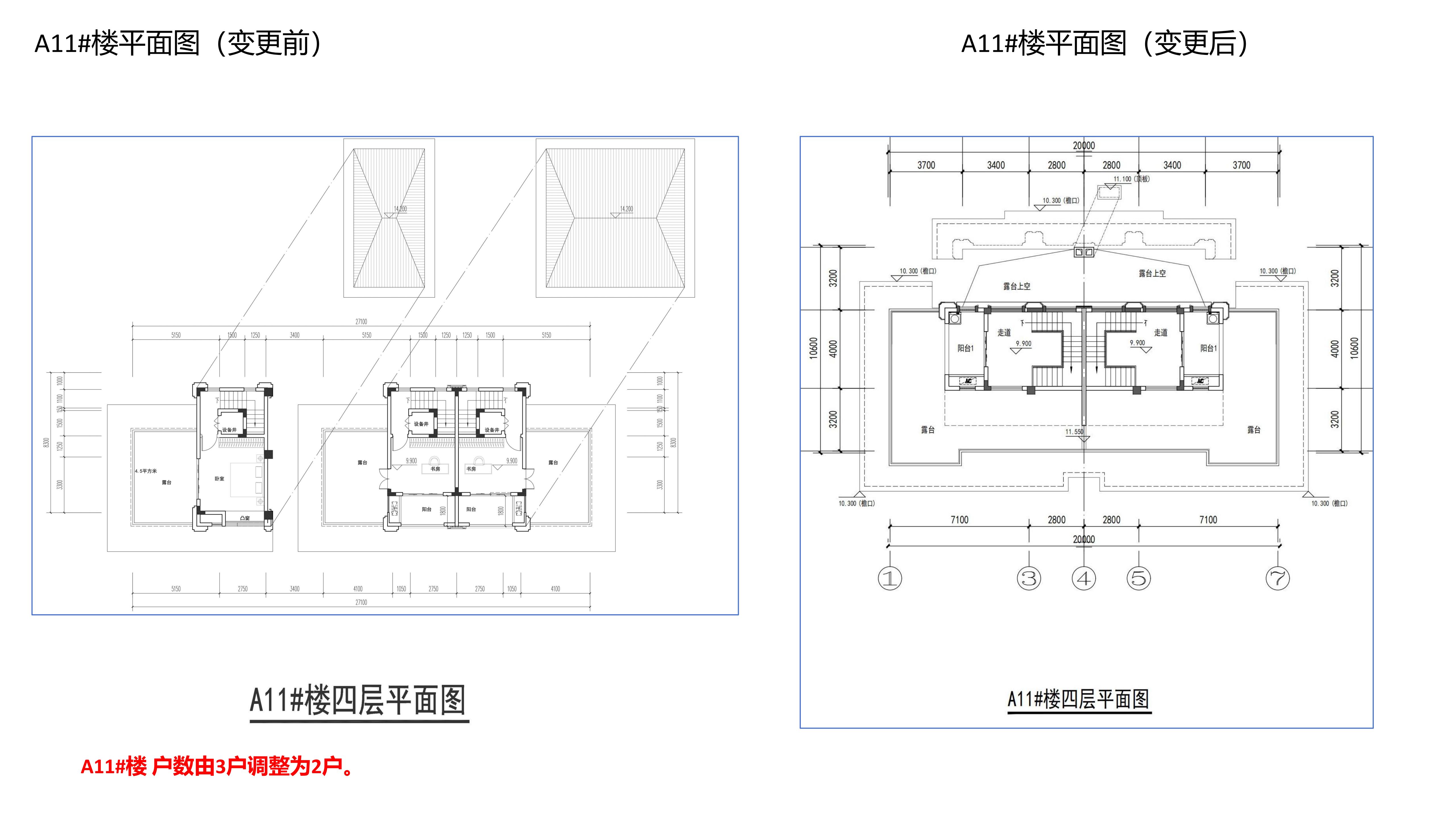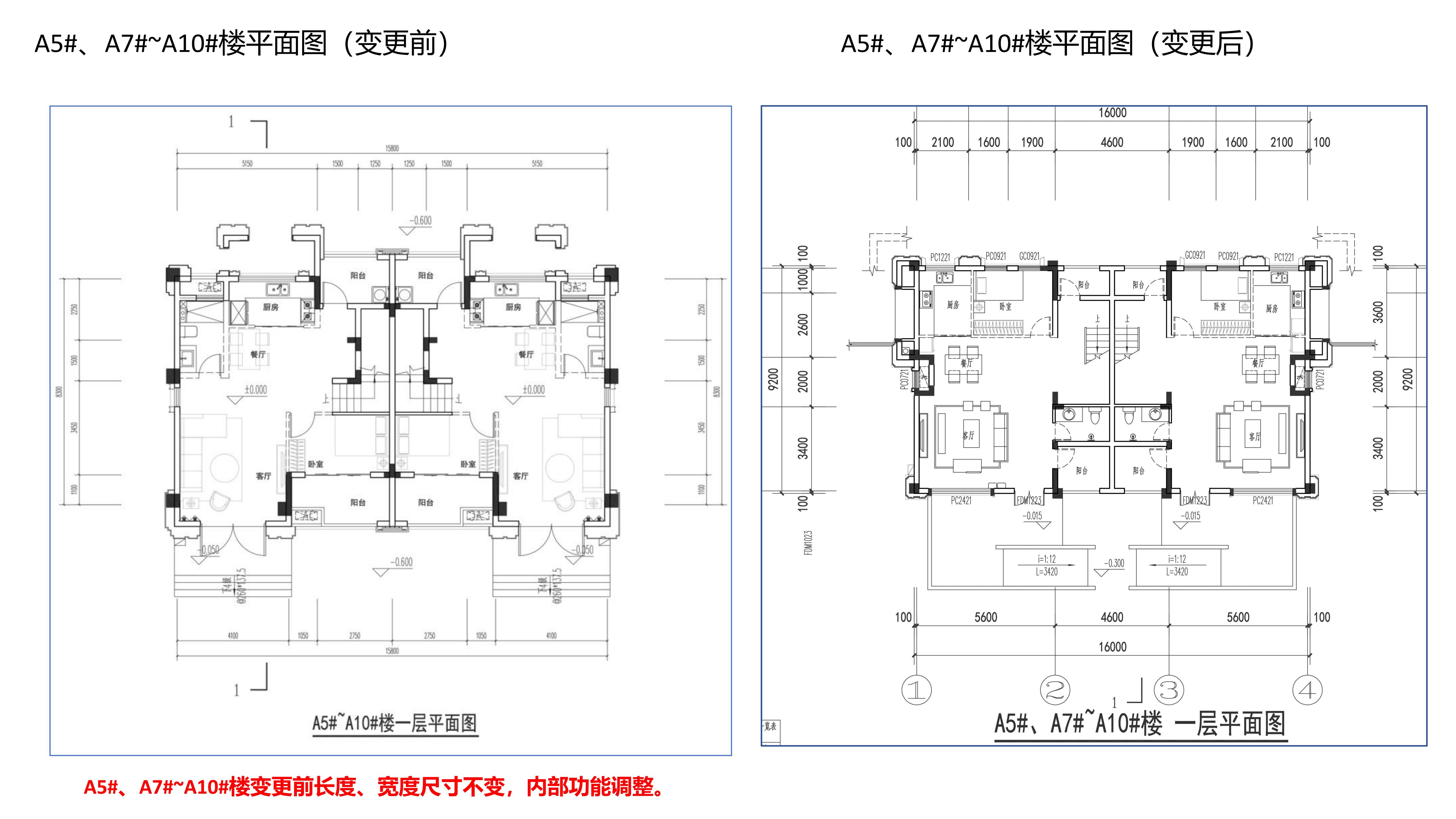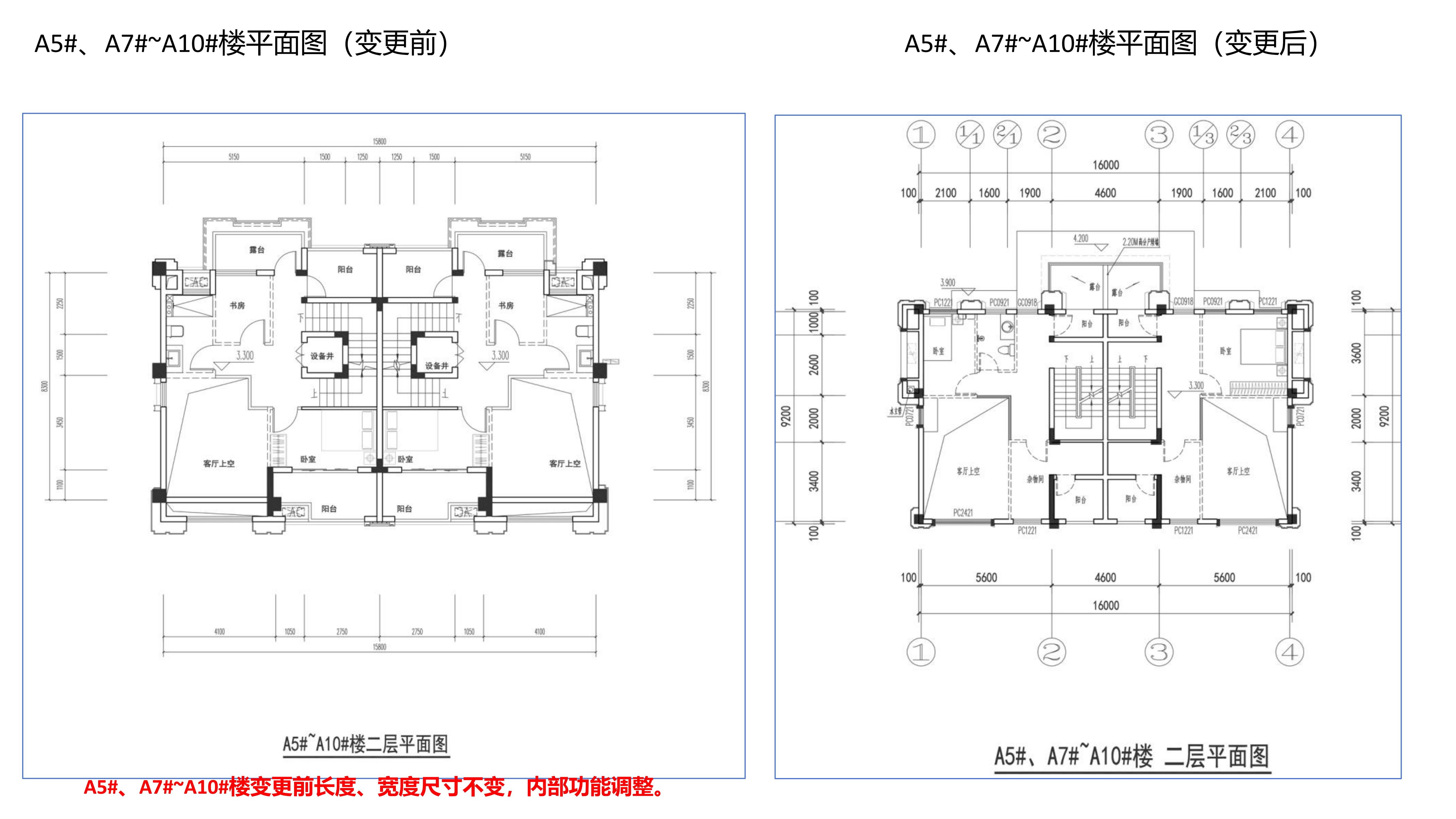 A5#楼、A7#~A10#楼1-4层平面图(调整前后)