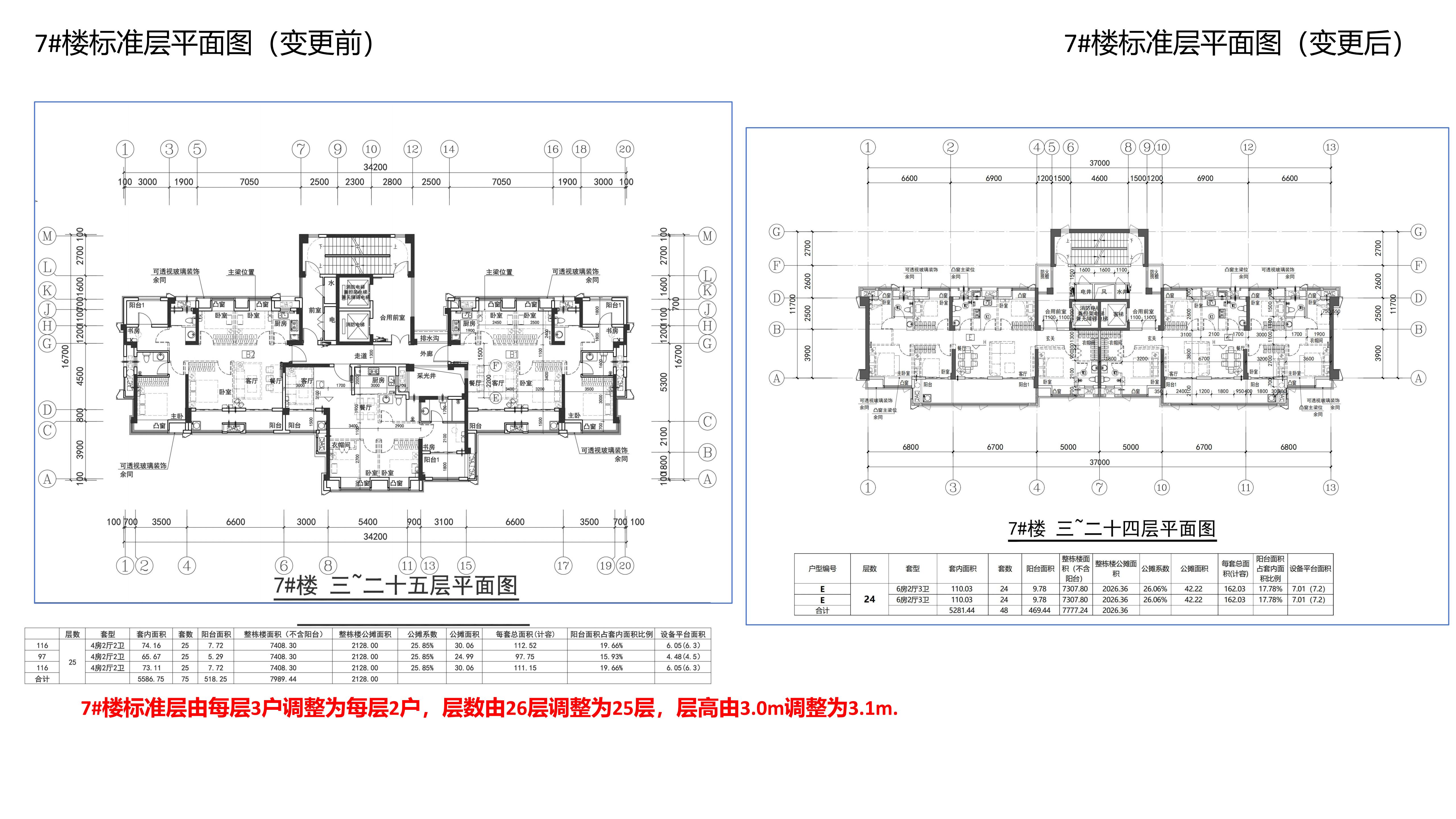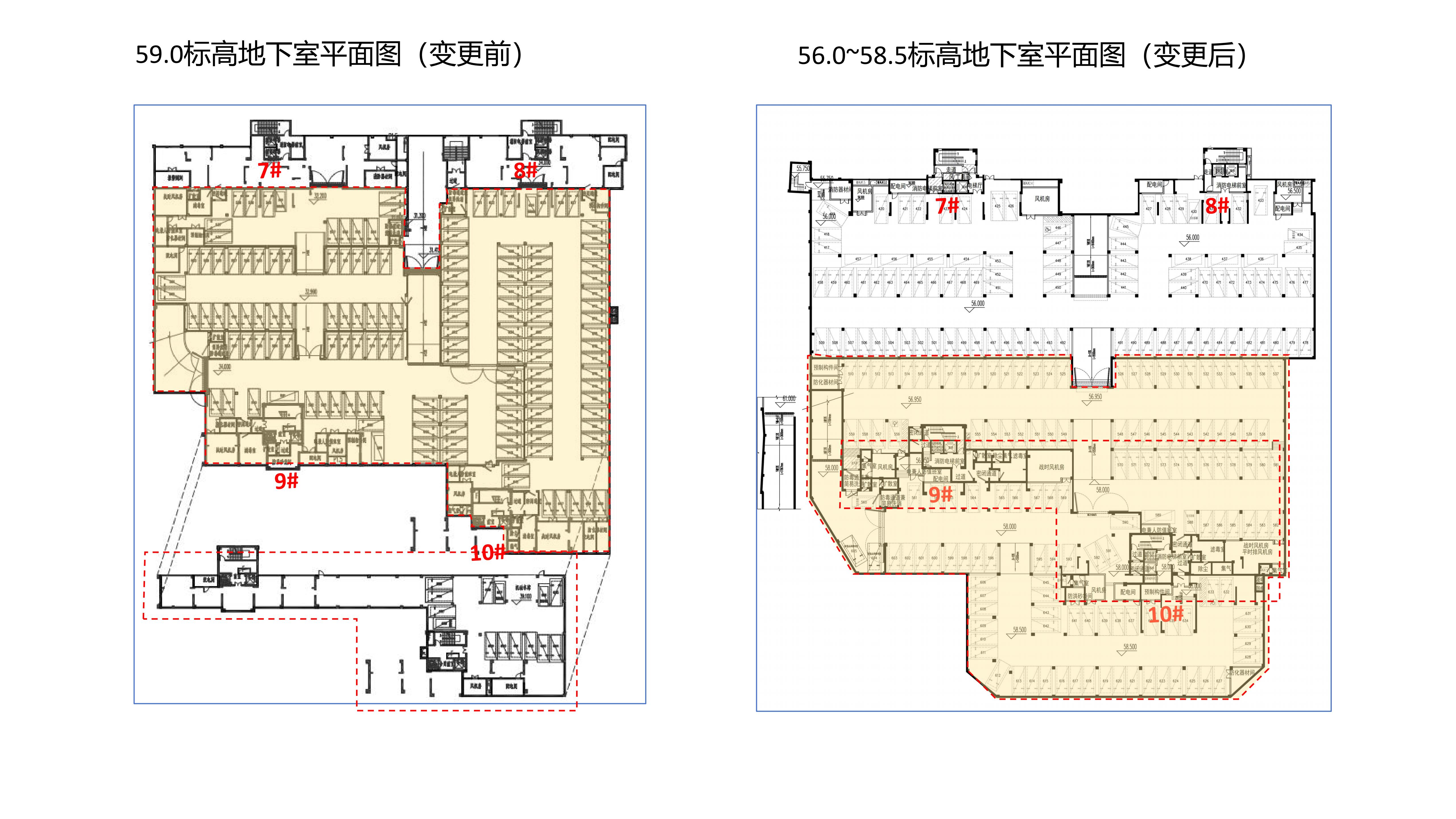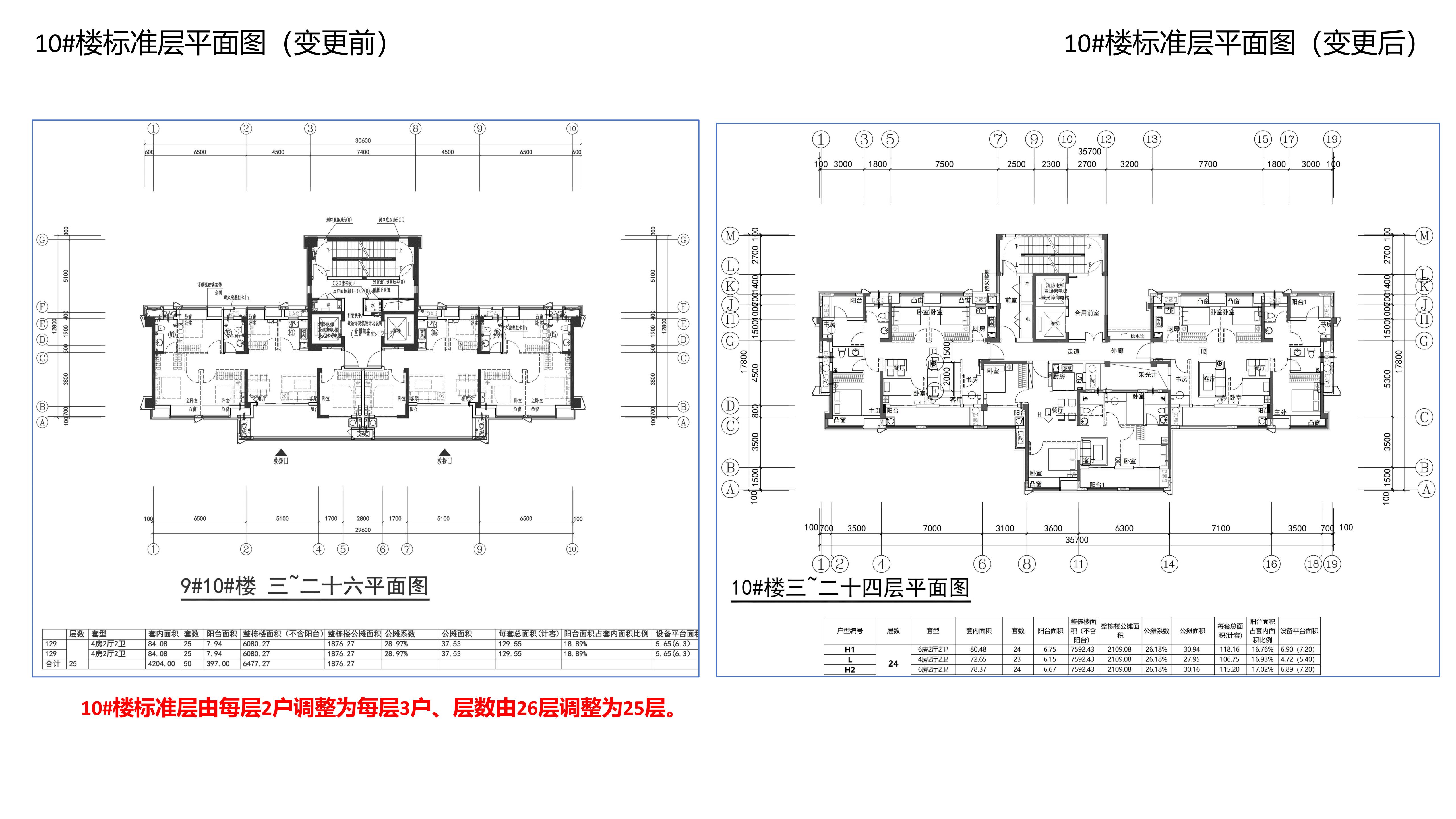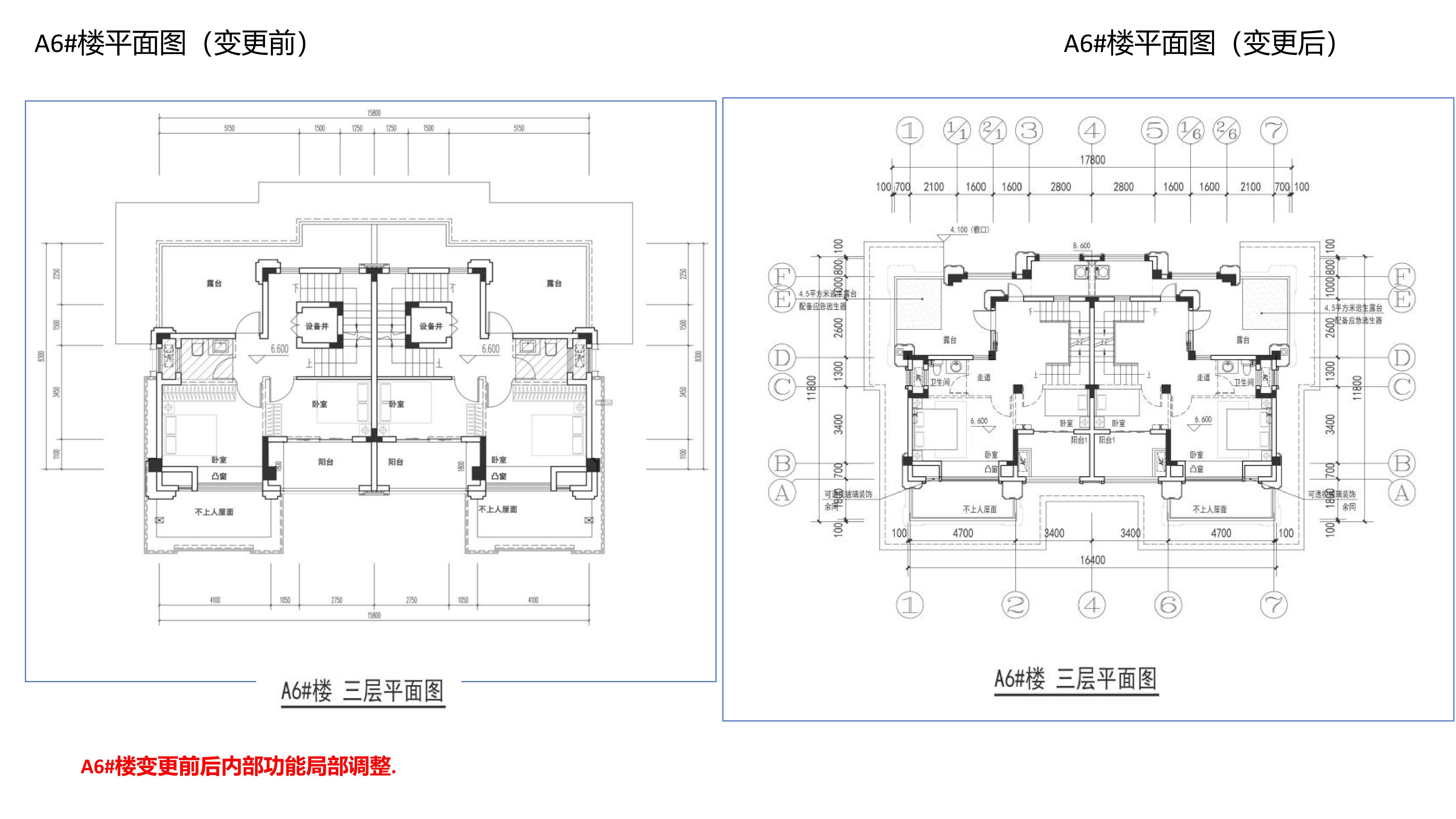A5#楼、A7#~A10#楼1-4层平面图(调整前后)