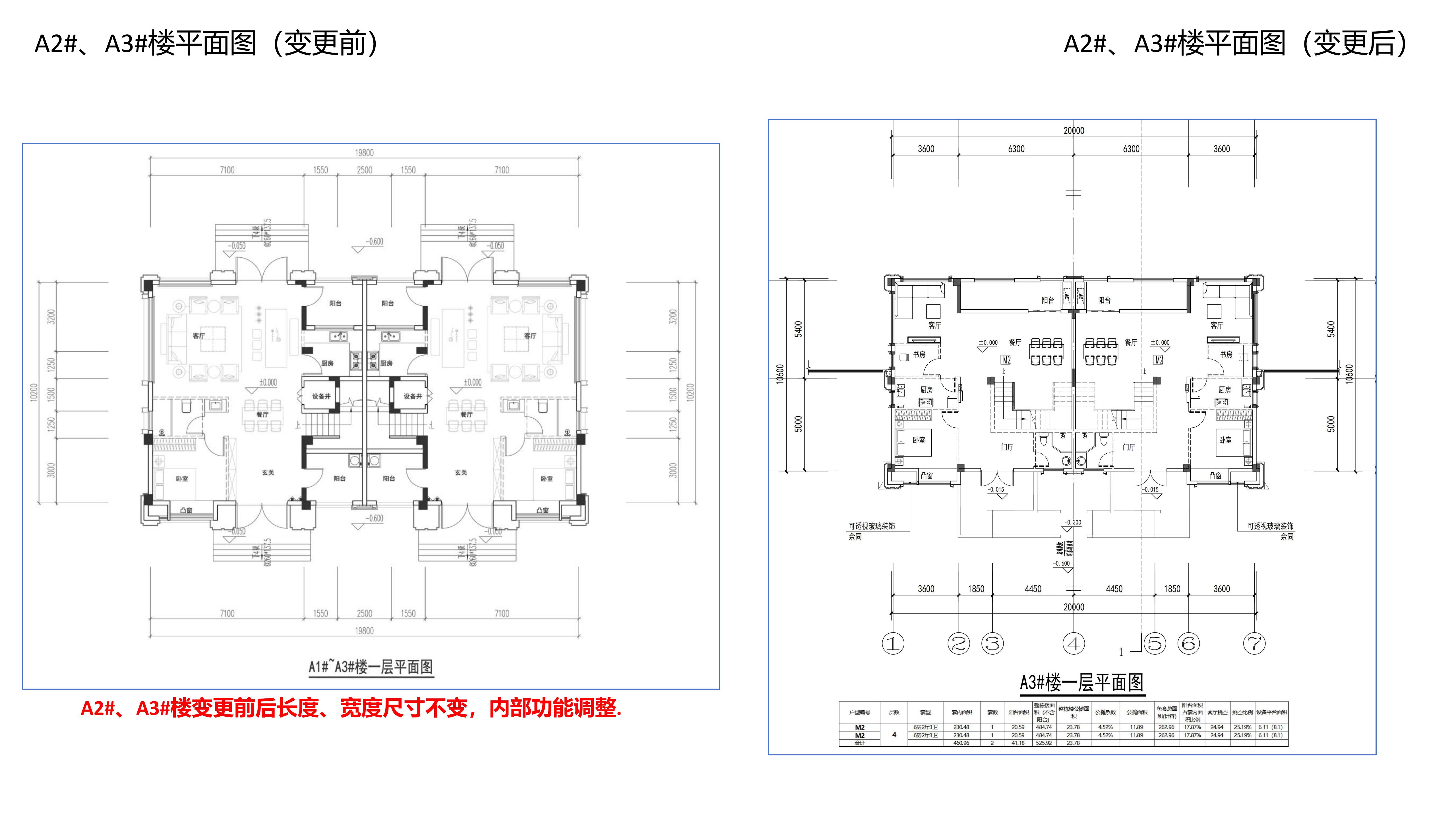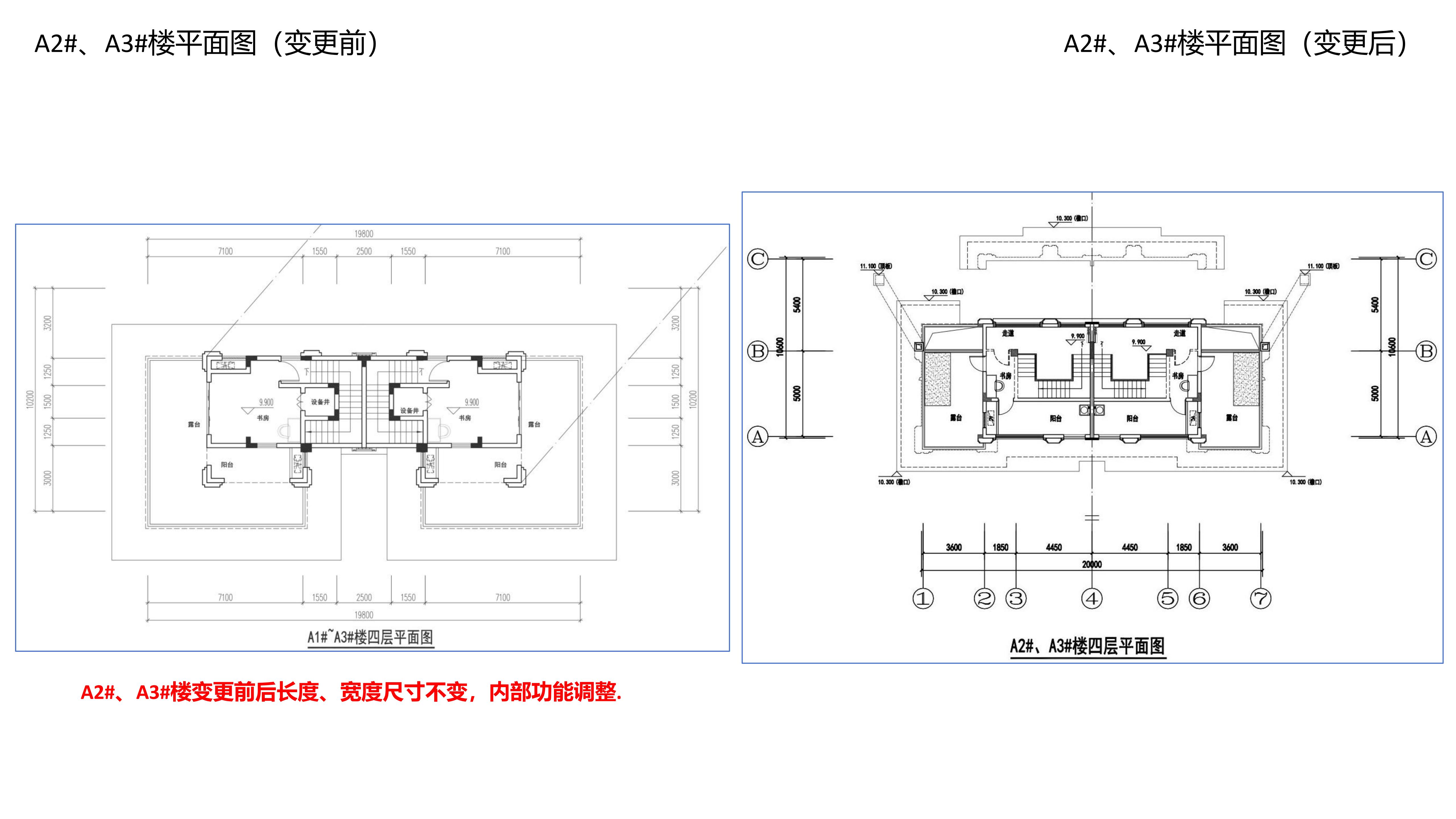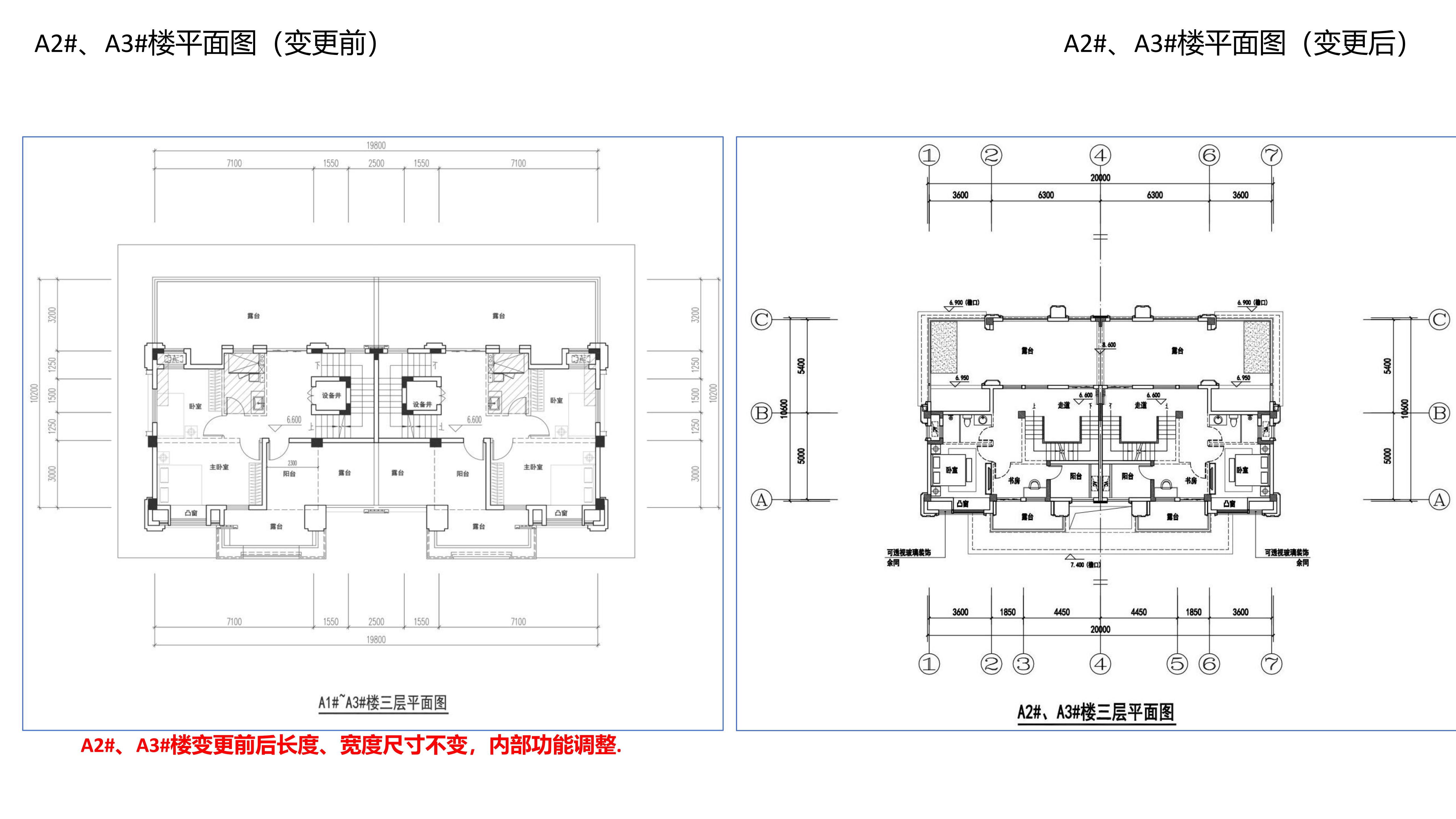 A2#楼~A3#楼1-4层平面图(调整前后)