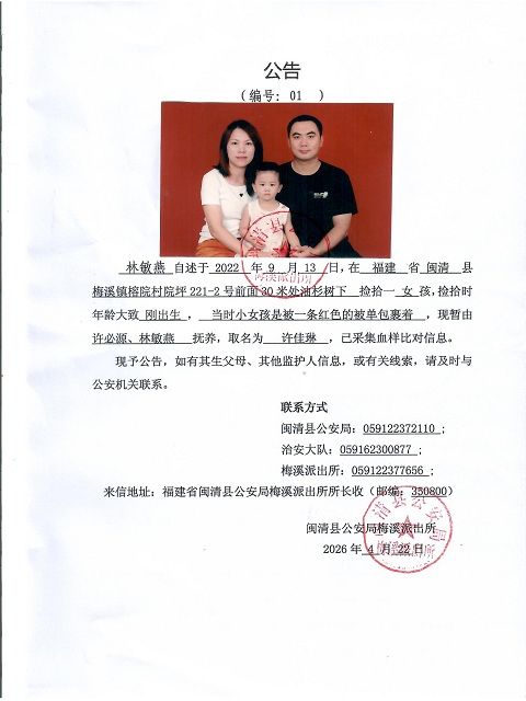 关于无户口人员林敏燕、黄国炜的寻亲公告