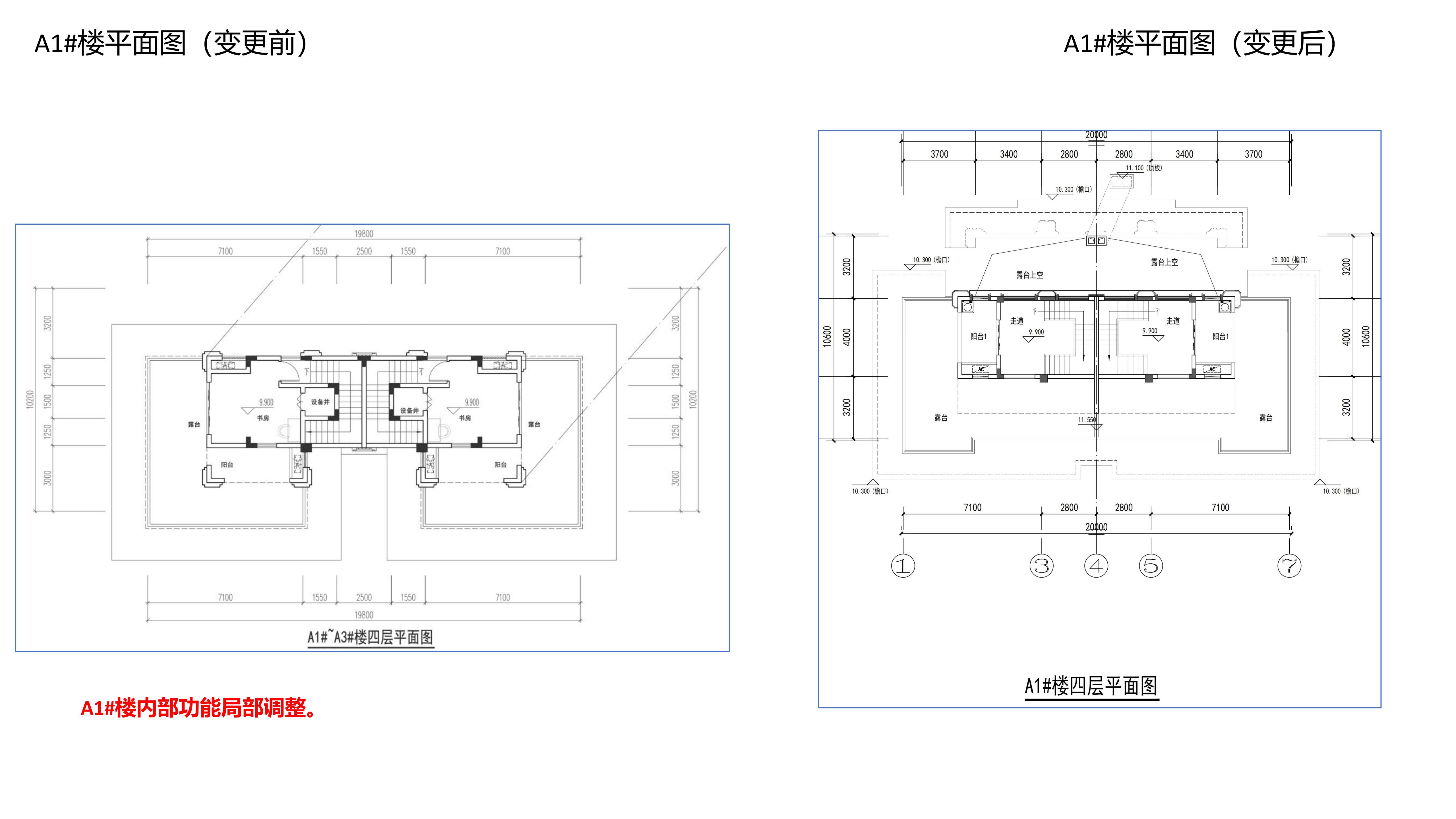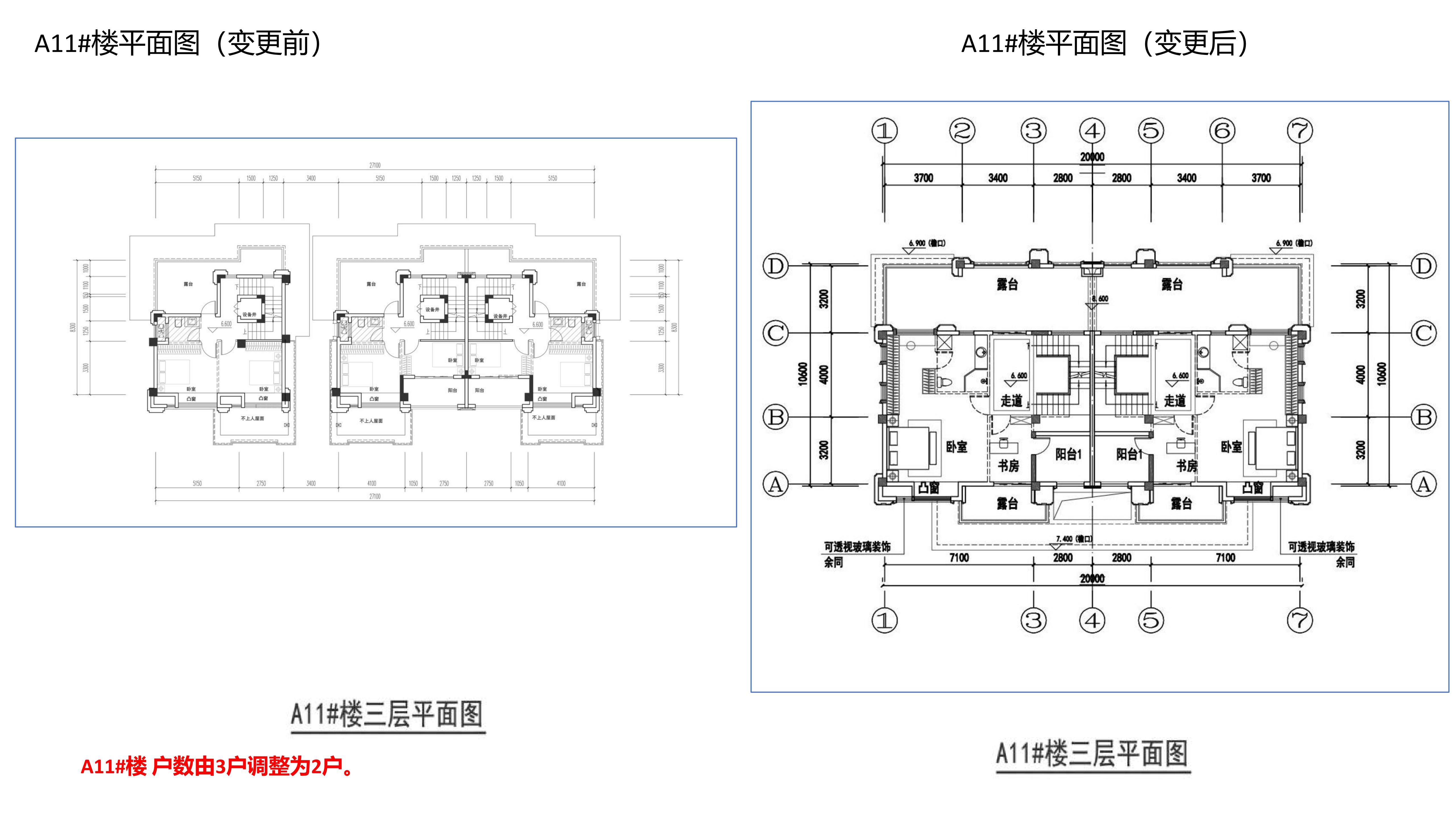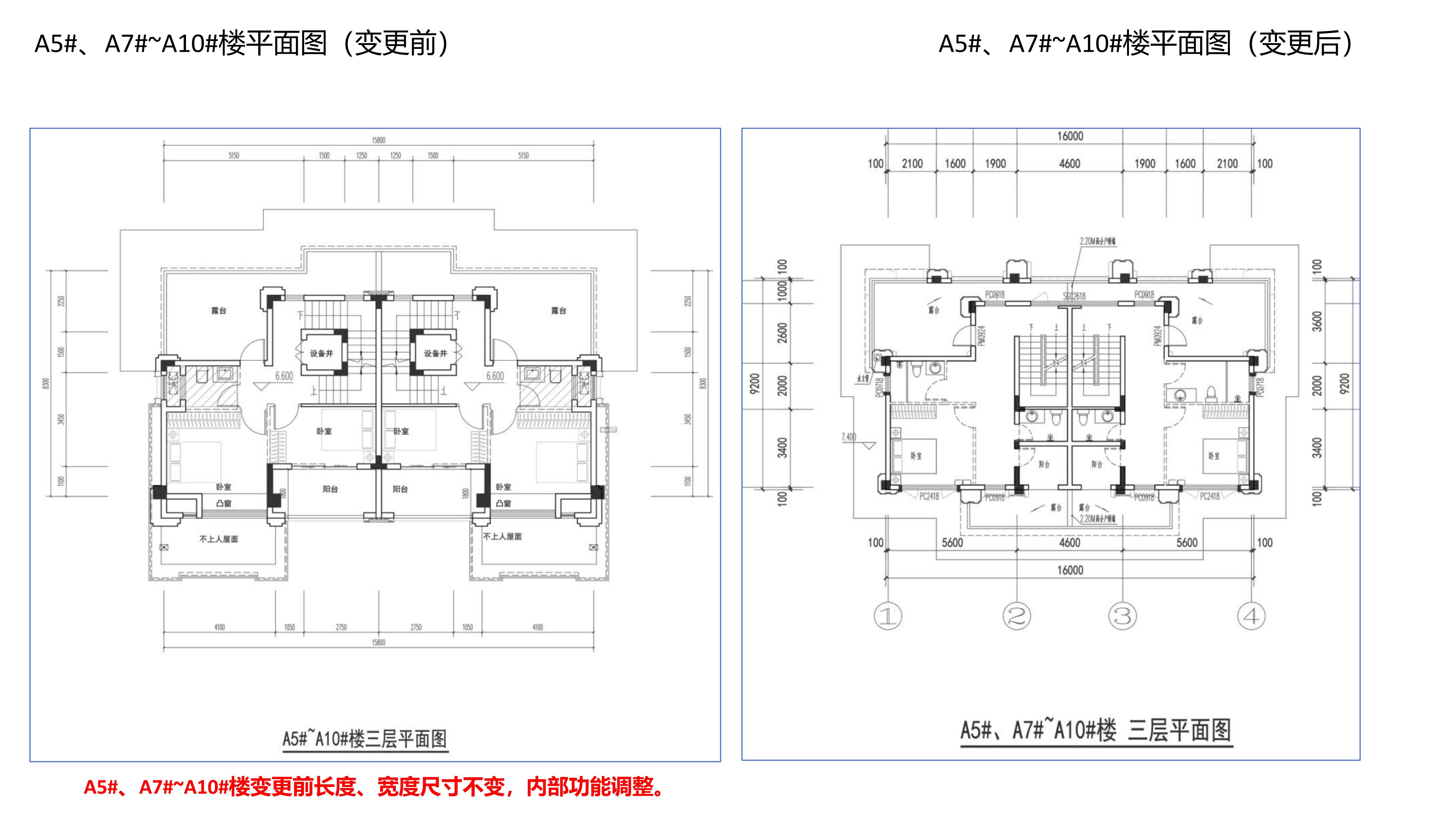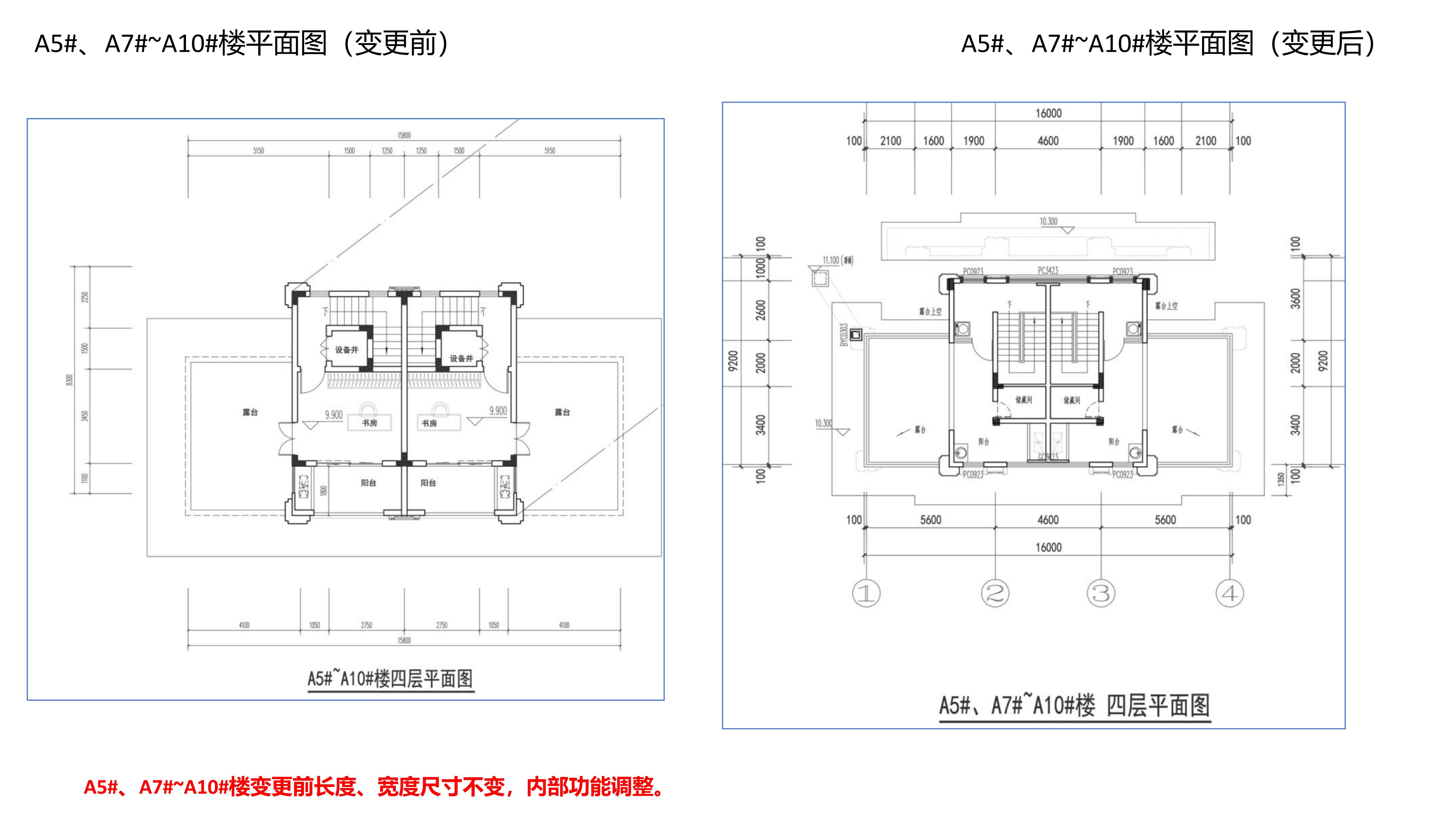 A5#楼、A7#~A10#楼1-4层平面图(调整前后)