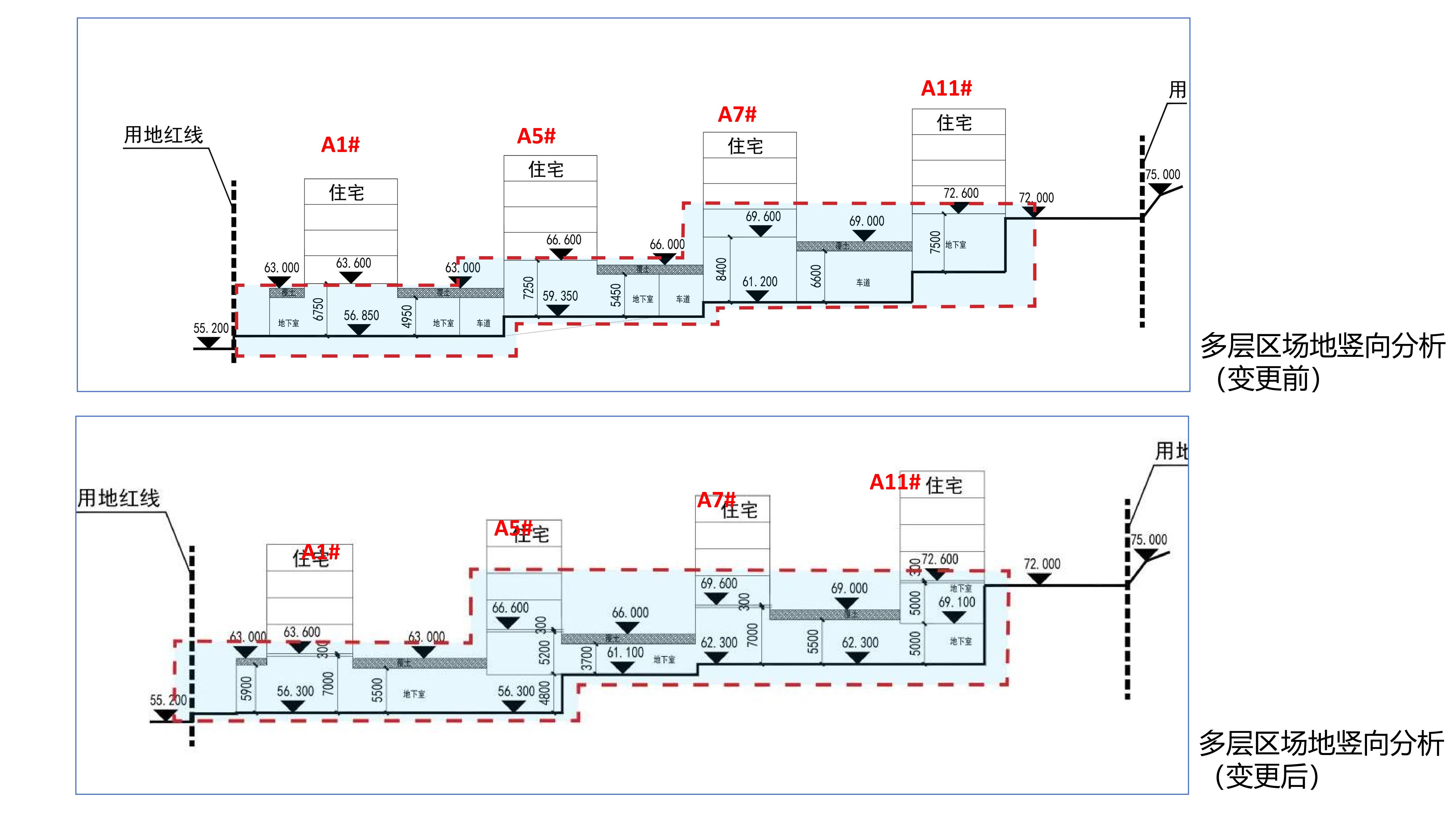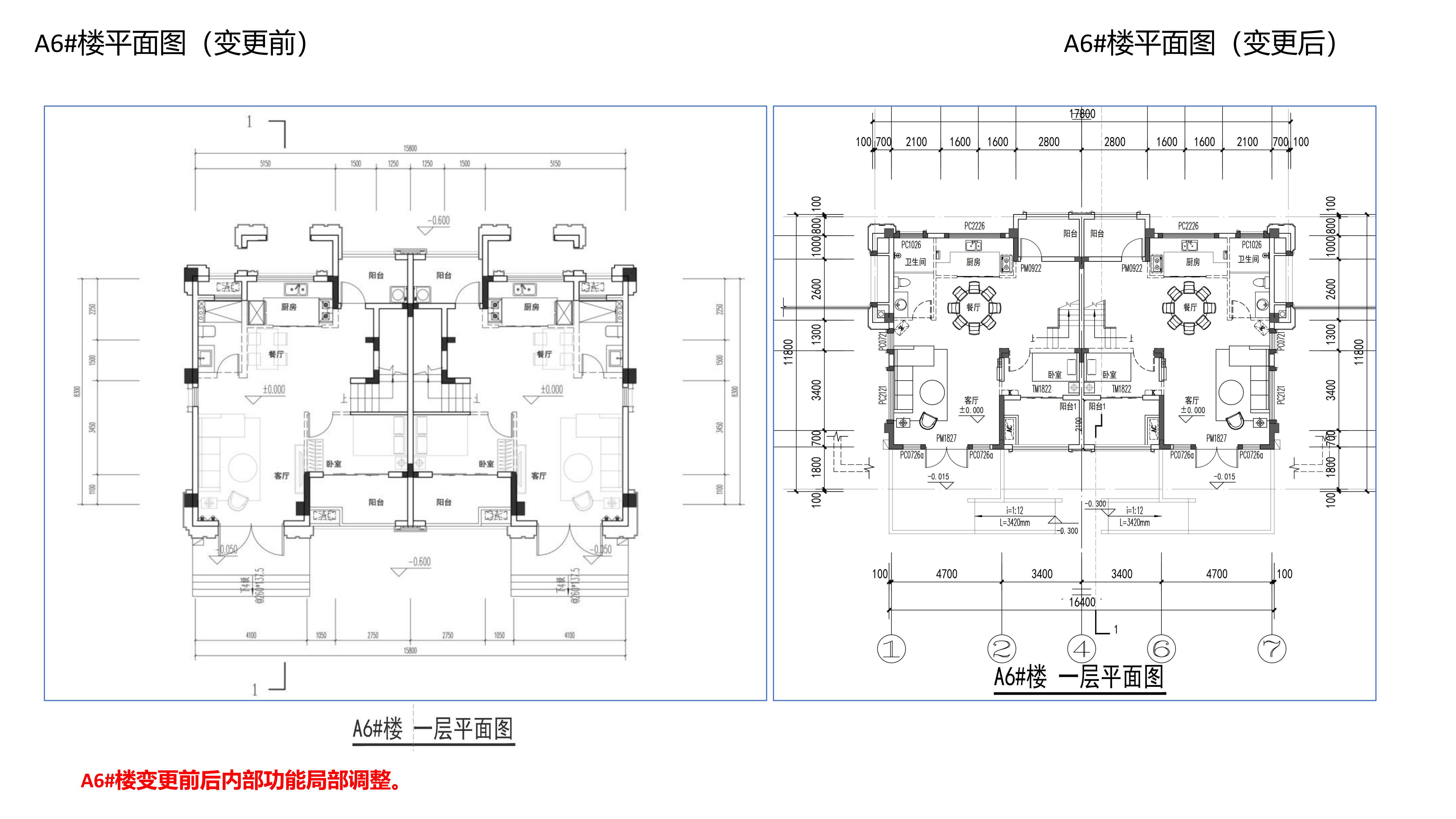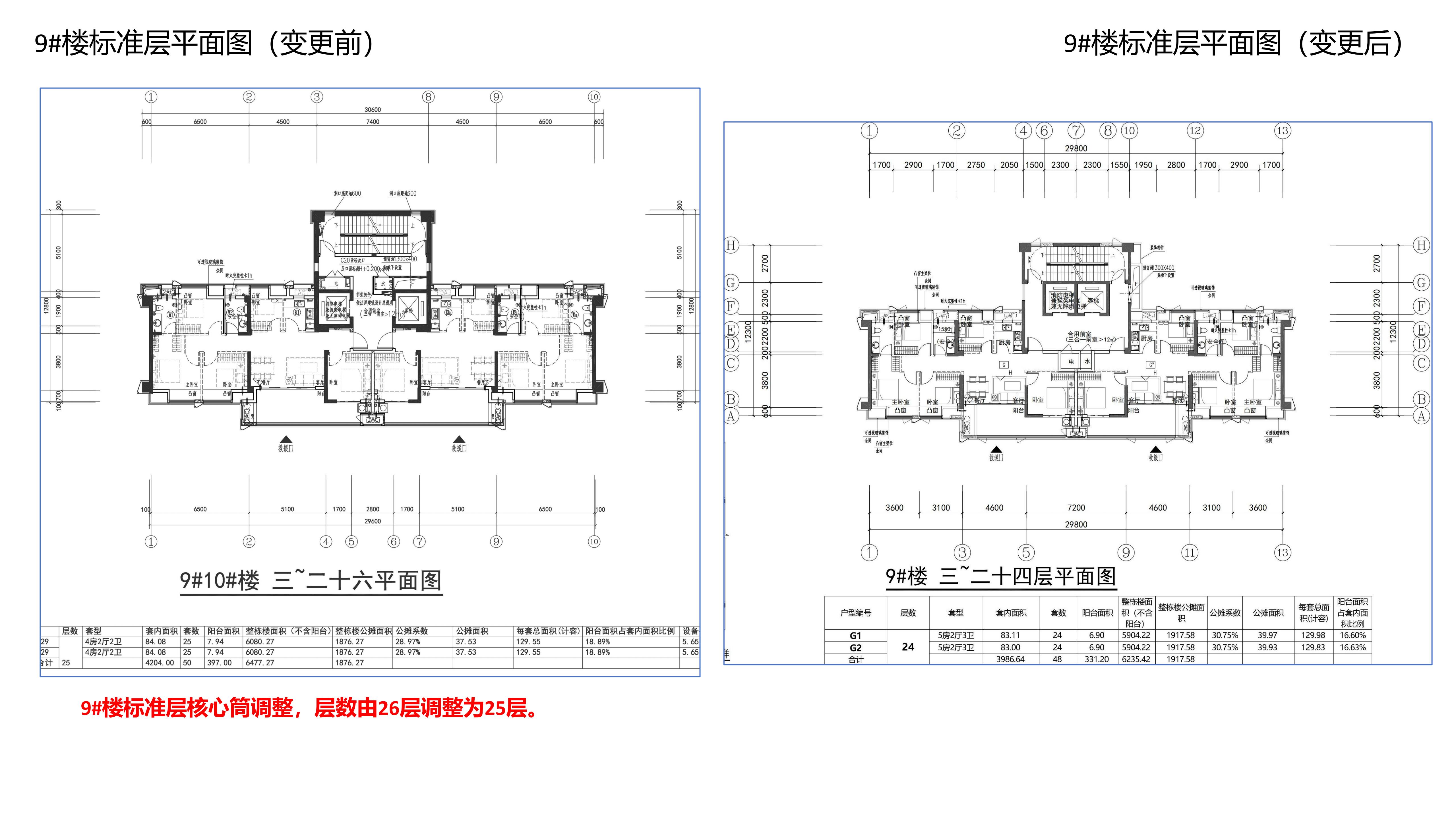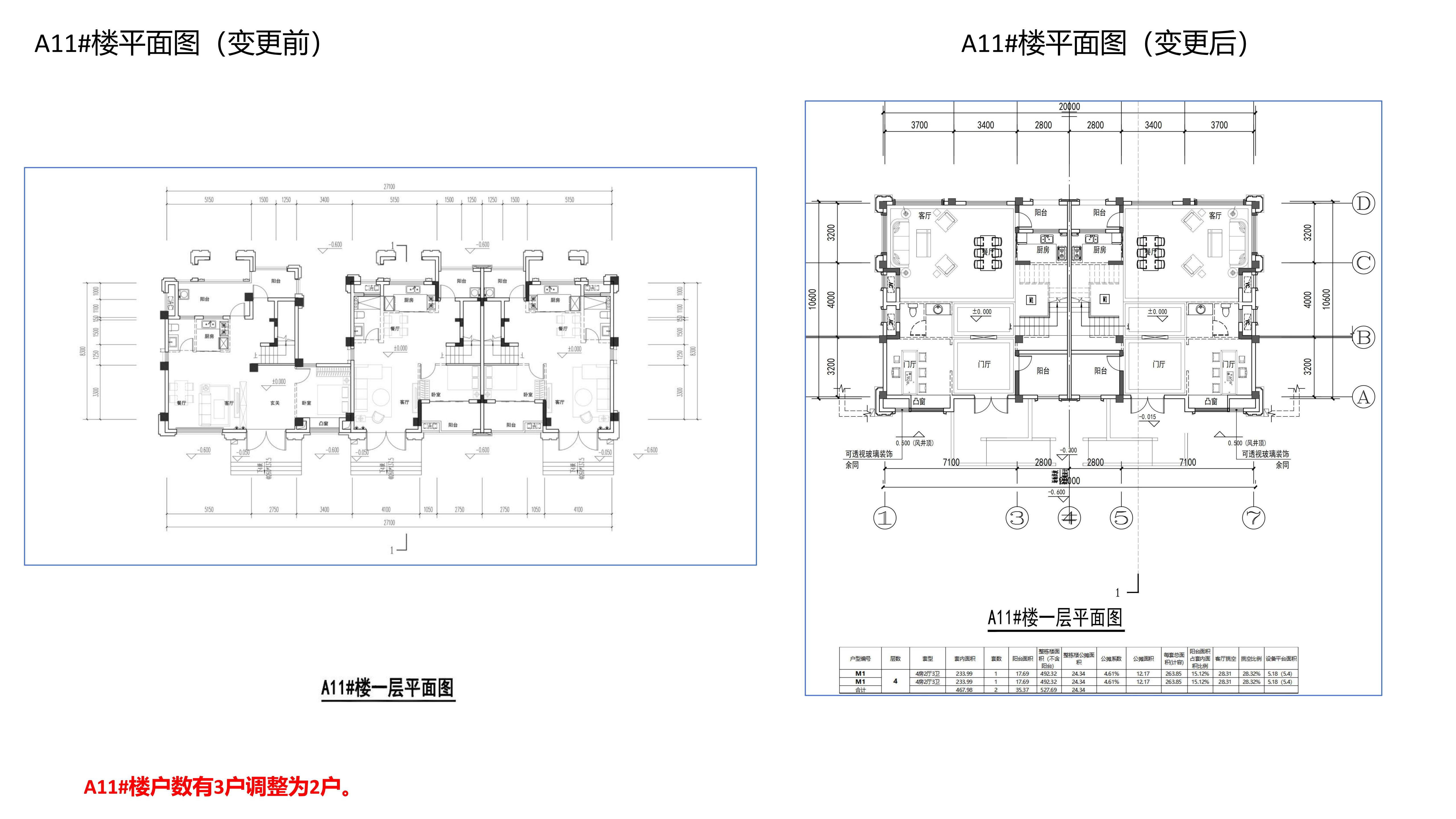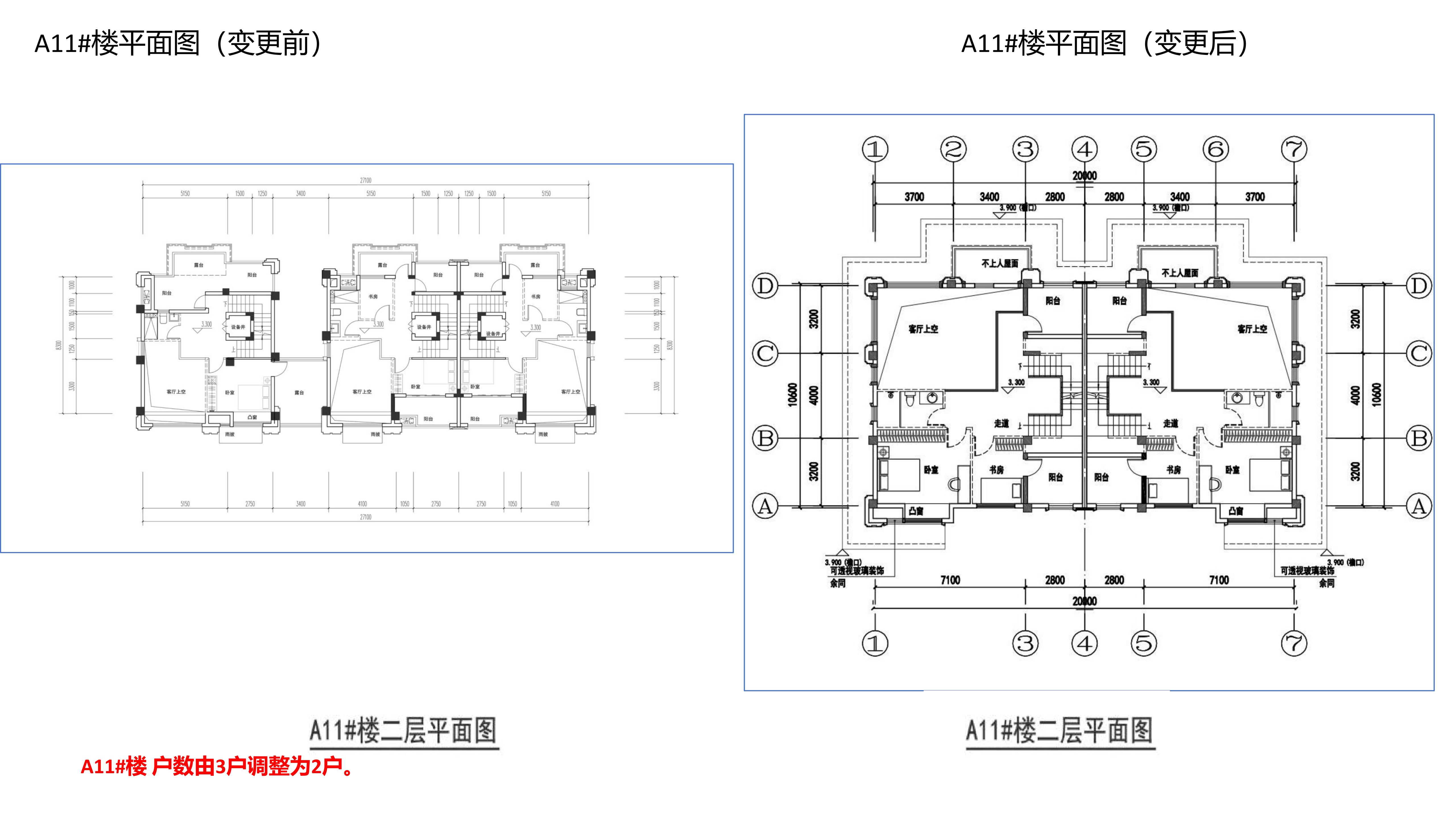 A5#楼、A7#~A10#楼1-4层平面图(调整前后)