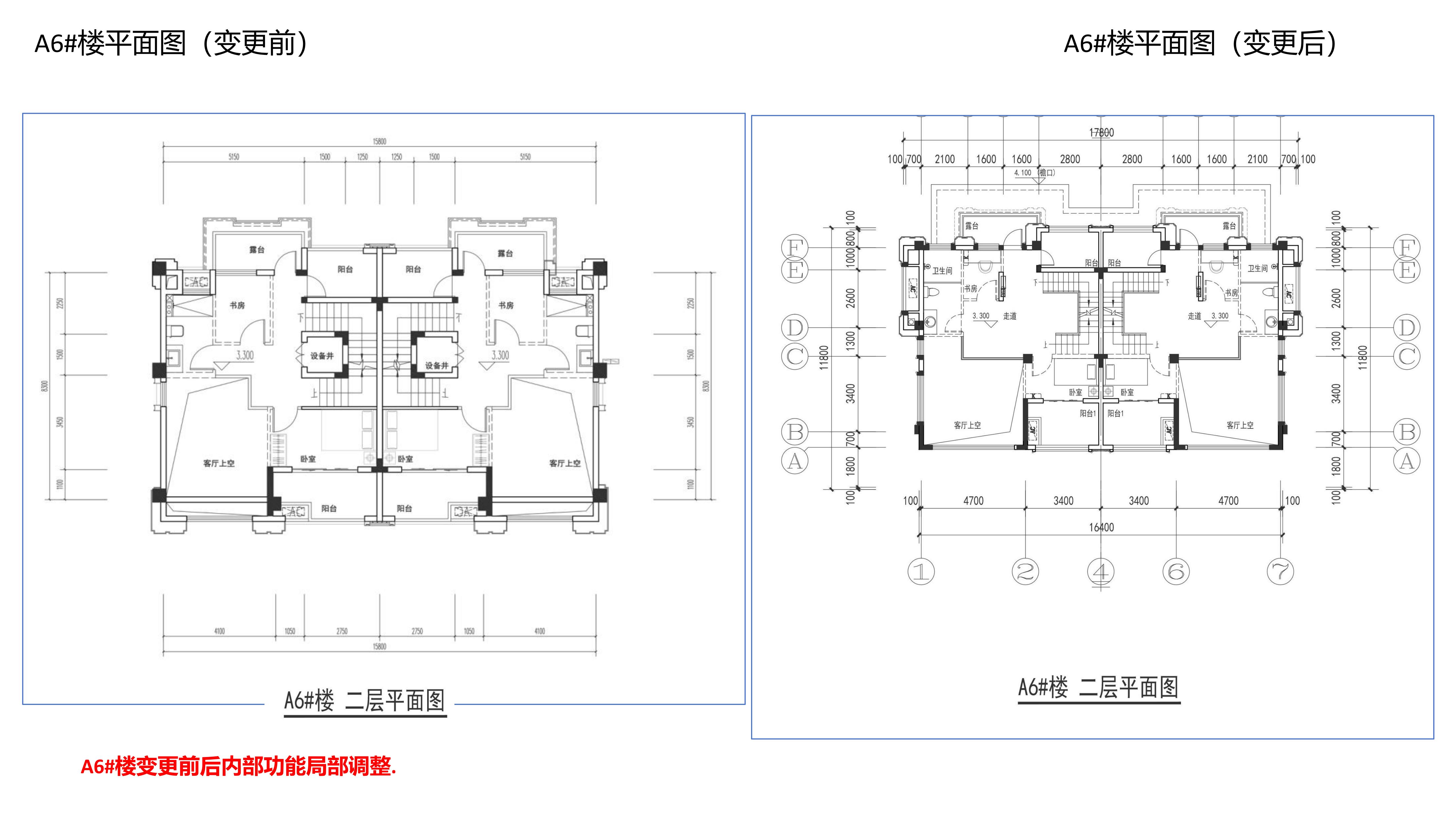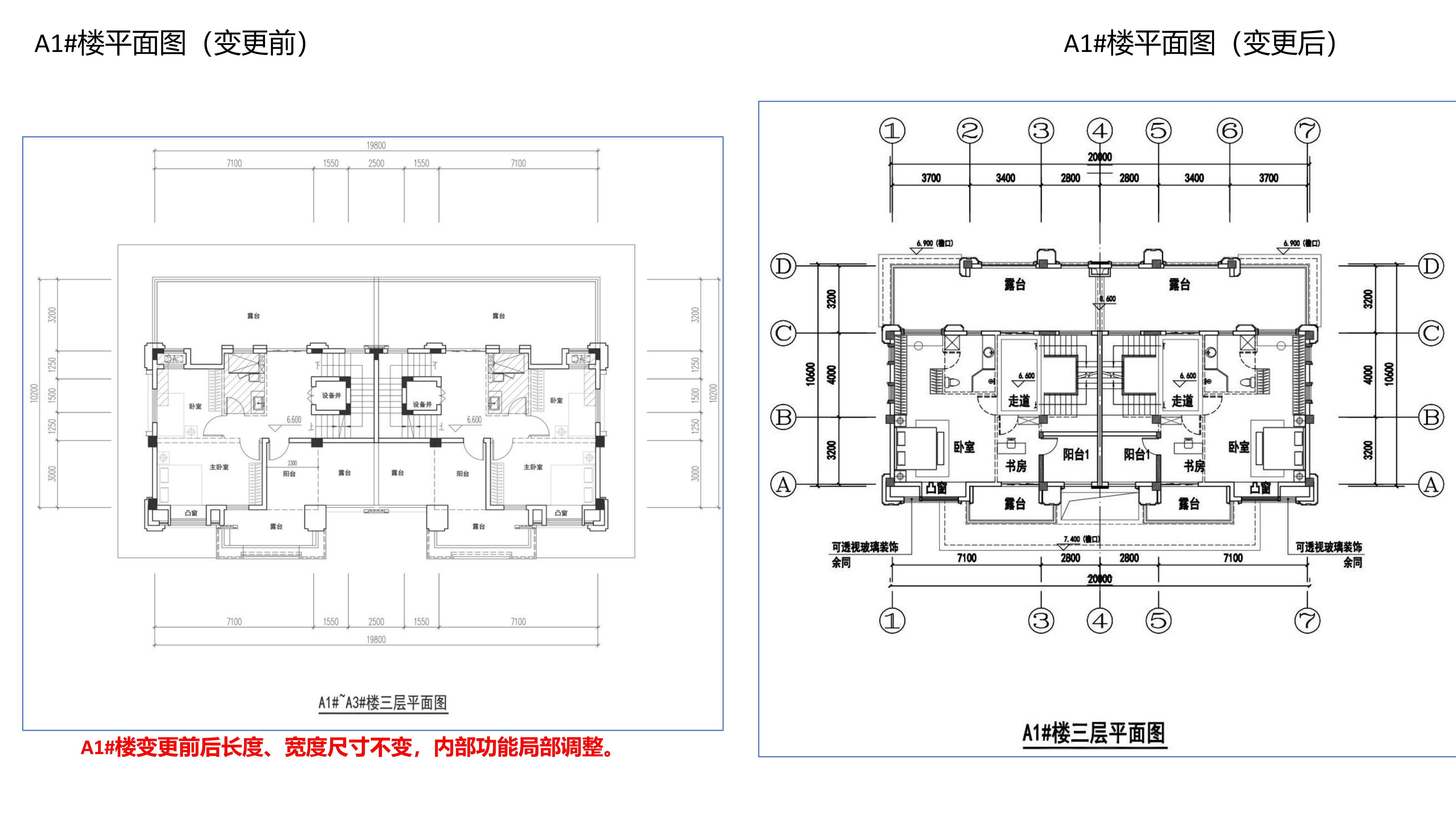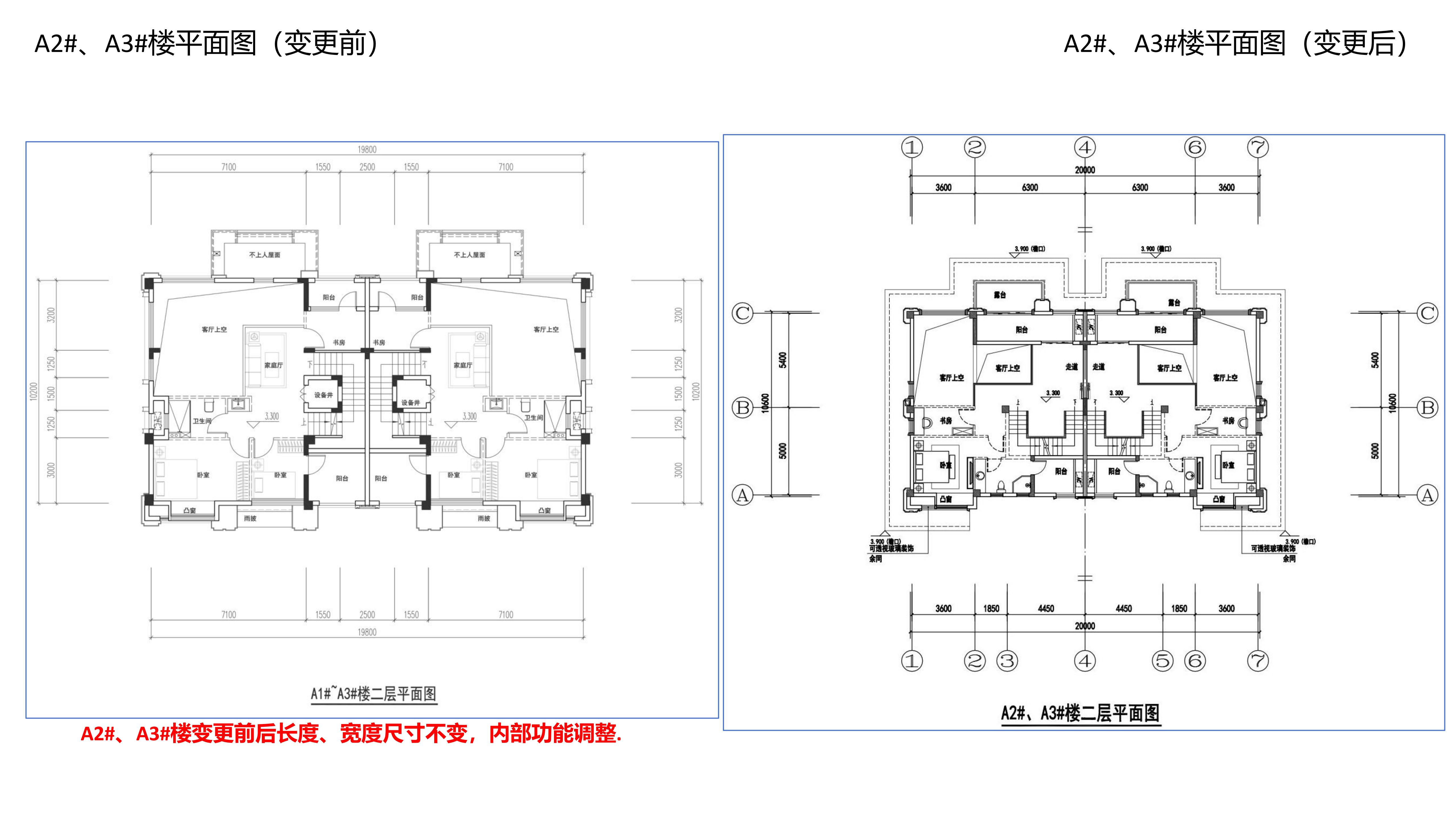 A2#楼~A3#楼1-4层平面图(调整前后)