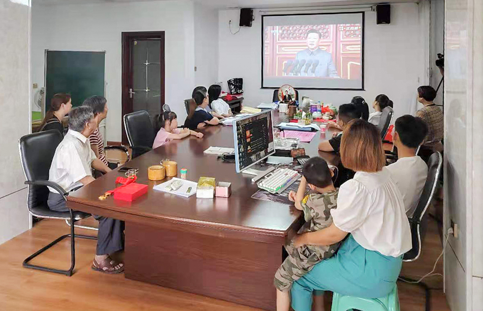 在党已66年的老党员张孔炎在梅溪镇梅铺村的家中和家人们共同收听收看习近平总书记在中国共产党成立100周年大会上的重要讲话直播,在收听收看过程中,全家人满怀激情,当听到精彩演讲时,大家不约而同地鼓起了掌声。