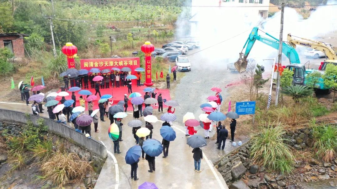 本报讯 1月22日上午,天漈大峡谷项目开工仪式在闽清县金沙镇举行。县委常委、县总工会主席黄斌出席开工仪式。金沙镇党委书记黄敬国致辞并宣布项目正式开工。