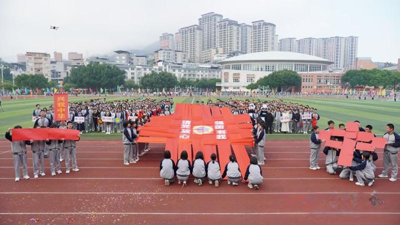 学生们参加运动会开幕式。(闽清一中供图)