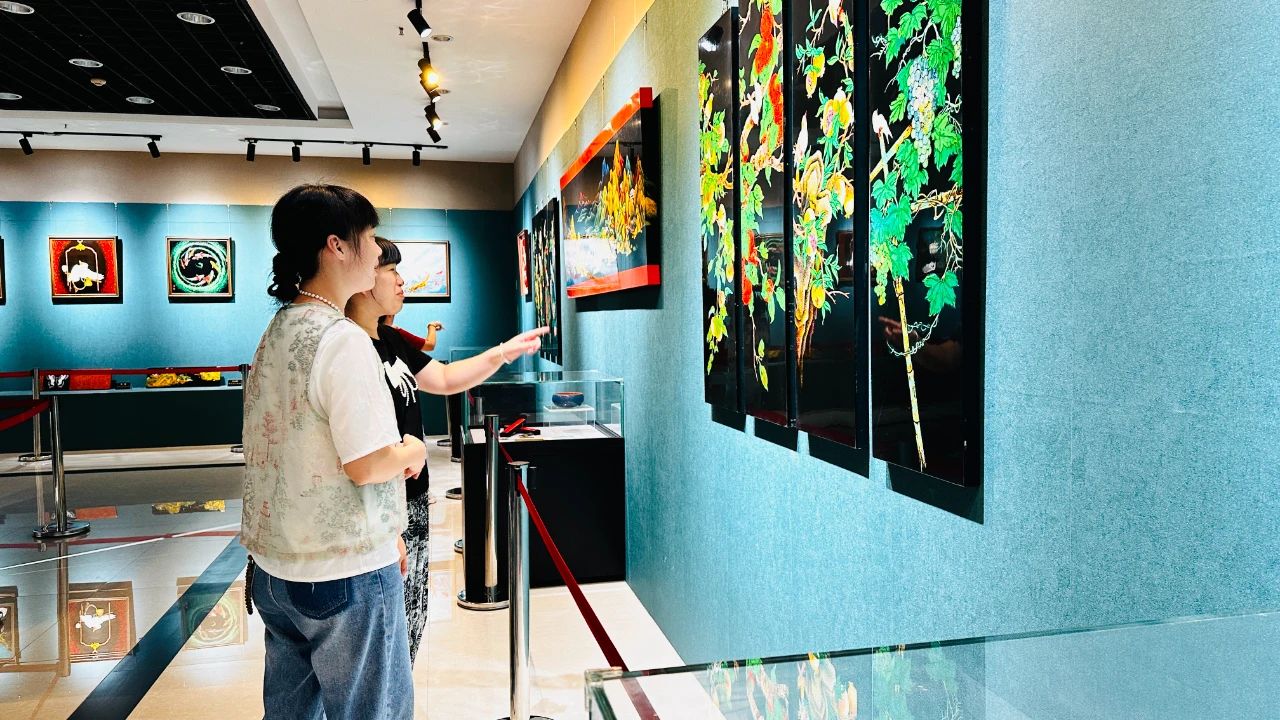 中国漆画作为一门融合传统工艺与现代艺术表现形式的独立画种。福州漆画源于古老的髹漆技艺,早在唐宋时期便已初现端倪,至明清渐趋成熟,近现代更是在传承中不断创新。它以天然大漆为魂,辅以金、银、贝壳、蛋壳等材料,通过堆漆、雕填、磨绘等繁复技法,呈现出层次丰富、肌理细腻的艺术效果。无论是山水人物的意境深远,还是花鸟鱼虫的灵动生趣,皆在漆色的温润与光泽中娓娓道来。它既是艺术品,又是实用装饰品,成为壁饰、屏风、首饰和壁画等的表现形式。磨漆画越来越多地走进人们日常生活中。