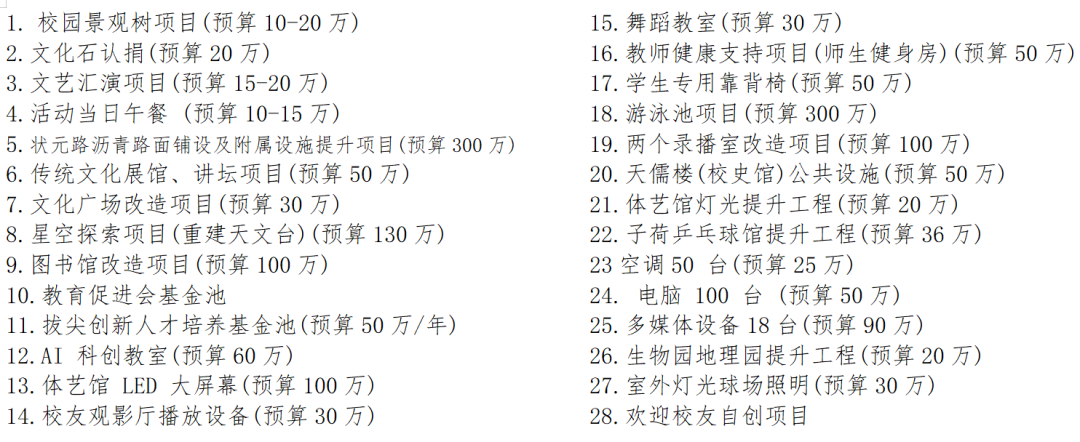 附征集校友、爱心企业家乐捐项目: