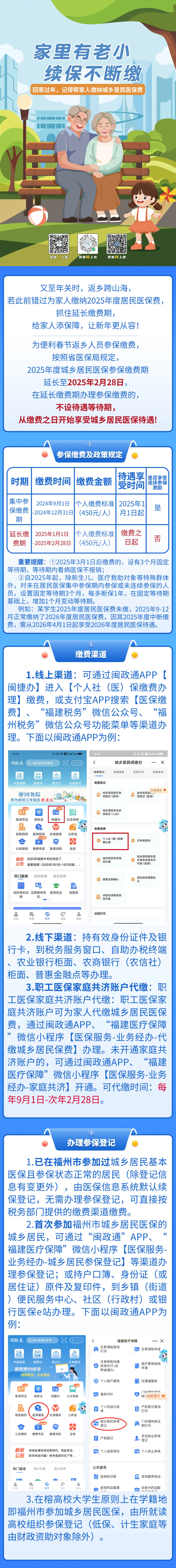 福州市 2025年度城乡居民医保参保缴费期延长至2025年2月28日