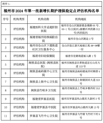 1.福州市2024年第一批新增长期护理保险定点评估机构名单
